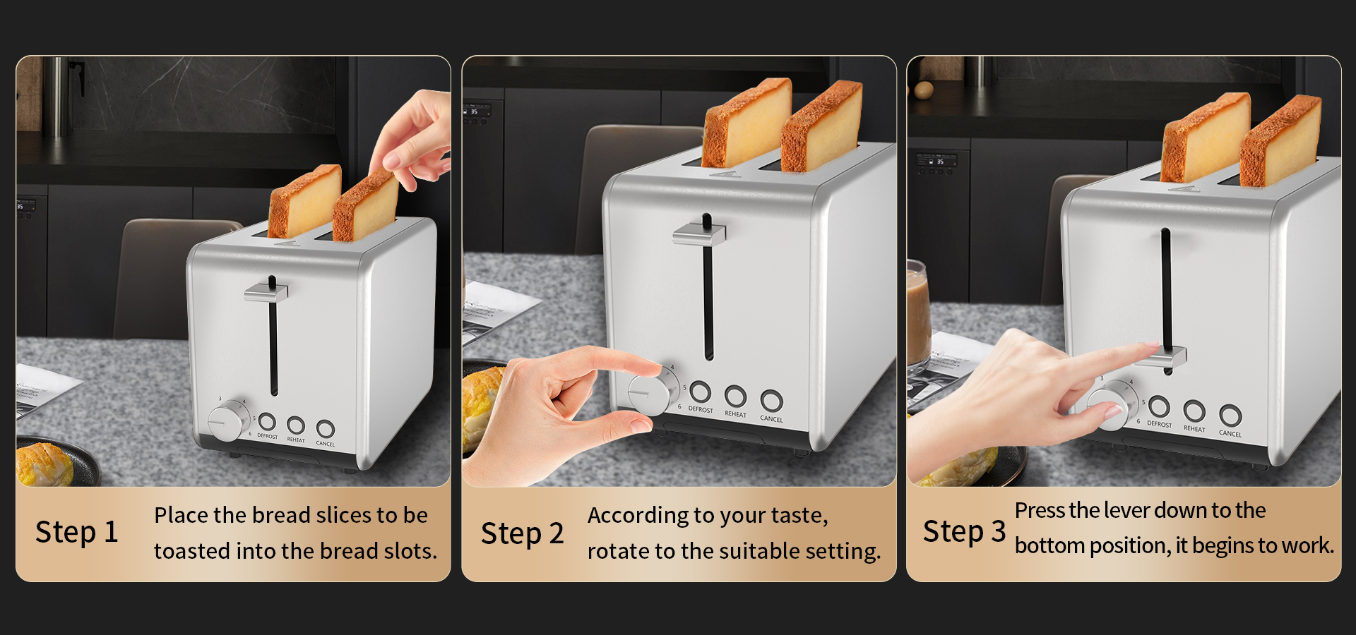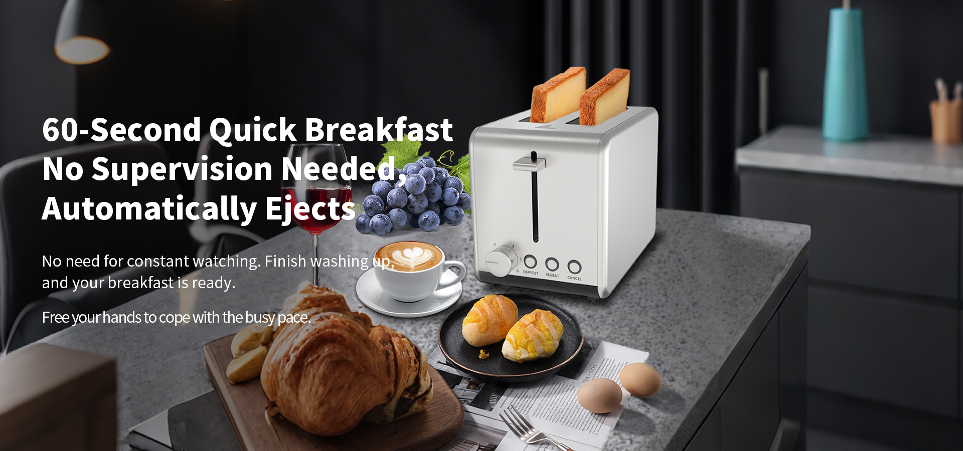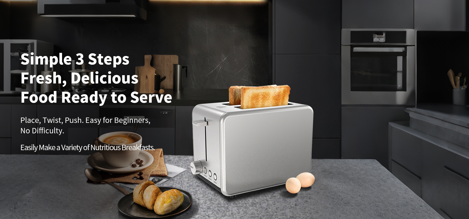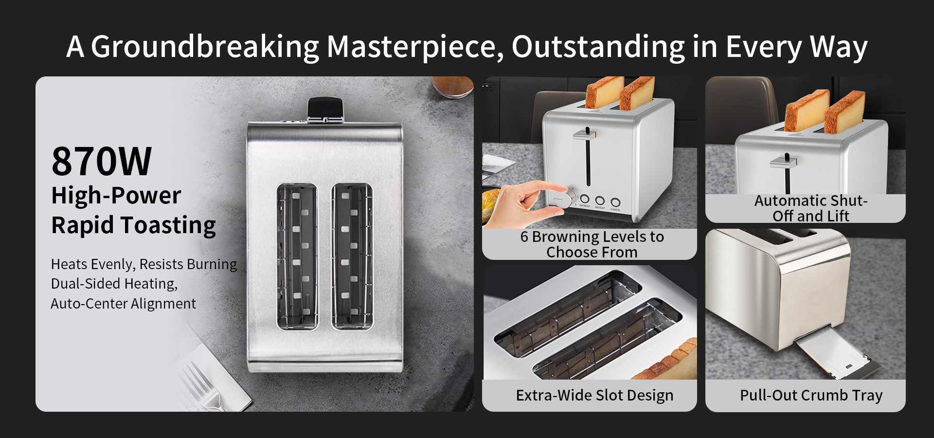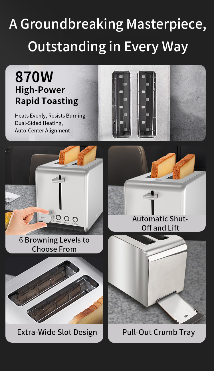 Auto-Centering, Removable Crumb Tray, Power Cord Storage (Base), Non-Slip Silicone Feet