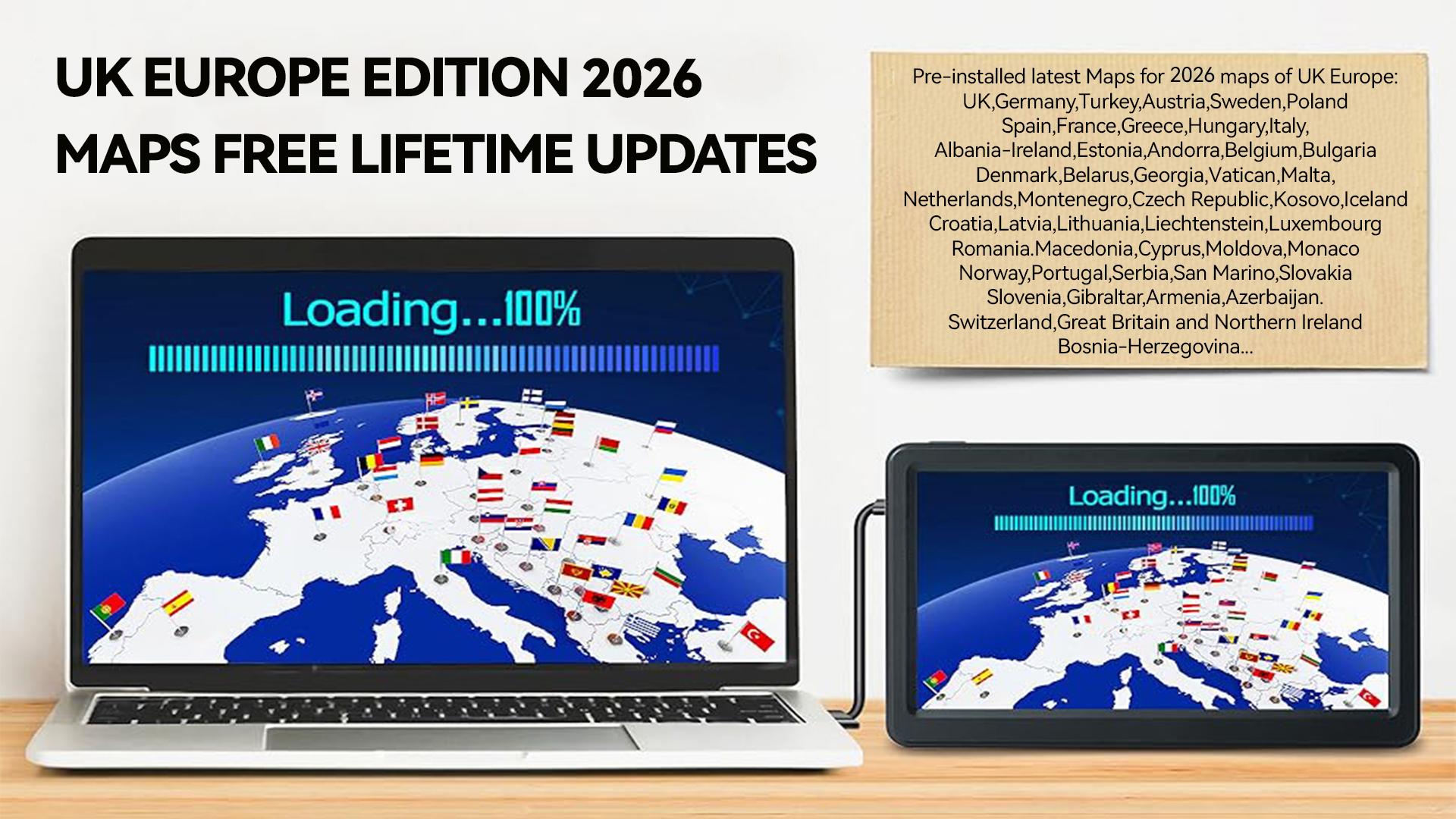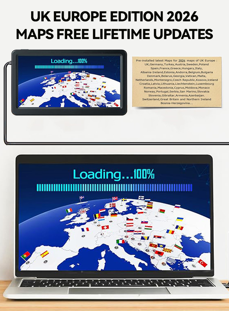 There is UK and European latest maps already pre installed in it, so you can use it anywhere within UK and EU countries. The best thing is it comes with map update without subscription forever and you can access these online at a website. This is a relatively easy process to complete but you will need to ensure the Sat Nav is fully charged before you do the update.