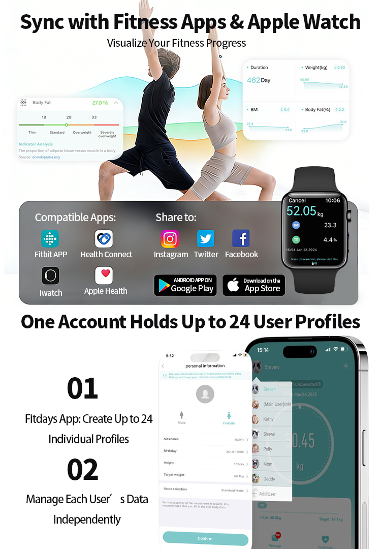 Set up user profiles directly on the scale and record measurements without connecting to the app. With responsive touch-sensitive controls, offline weighing is quick and intuitive—ideal for daily use, shared households, or moments when your phone isn’t nearby. Your data syncs seamlessly once the app reconnects.