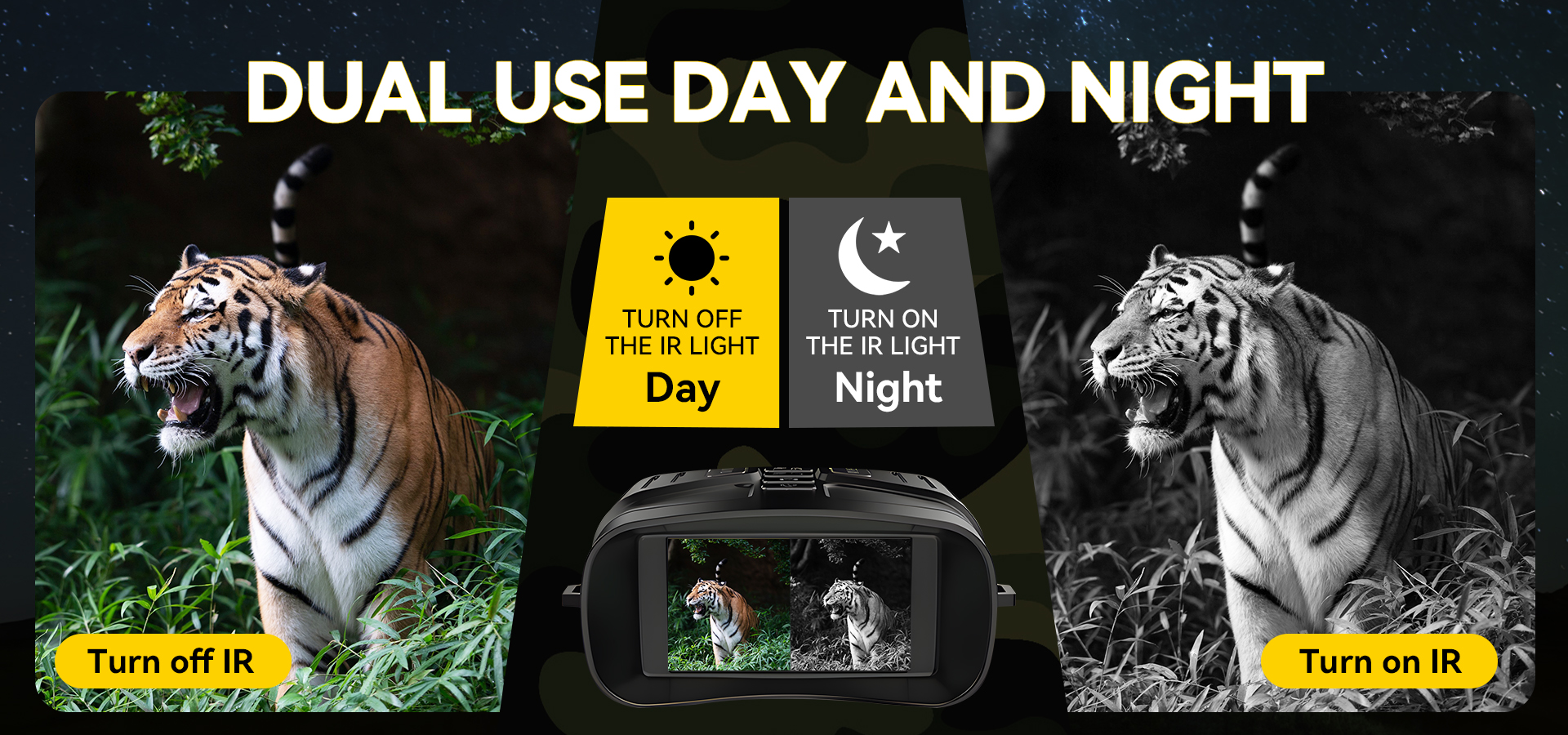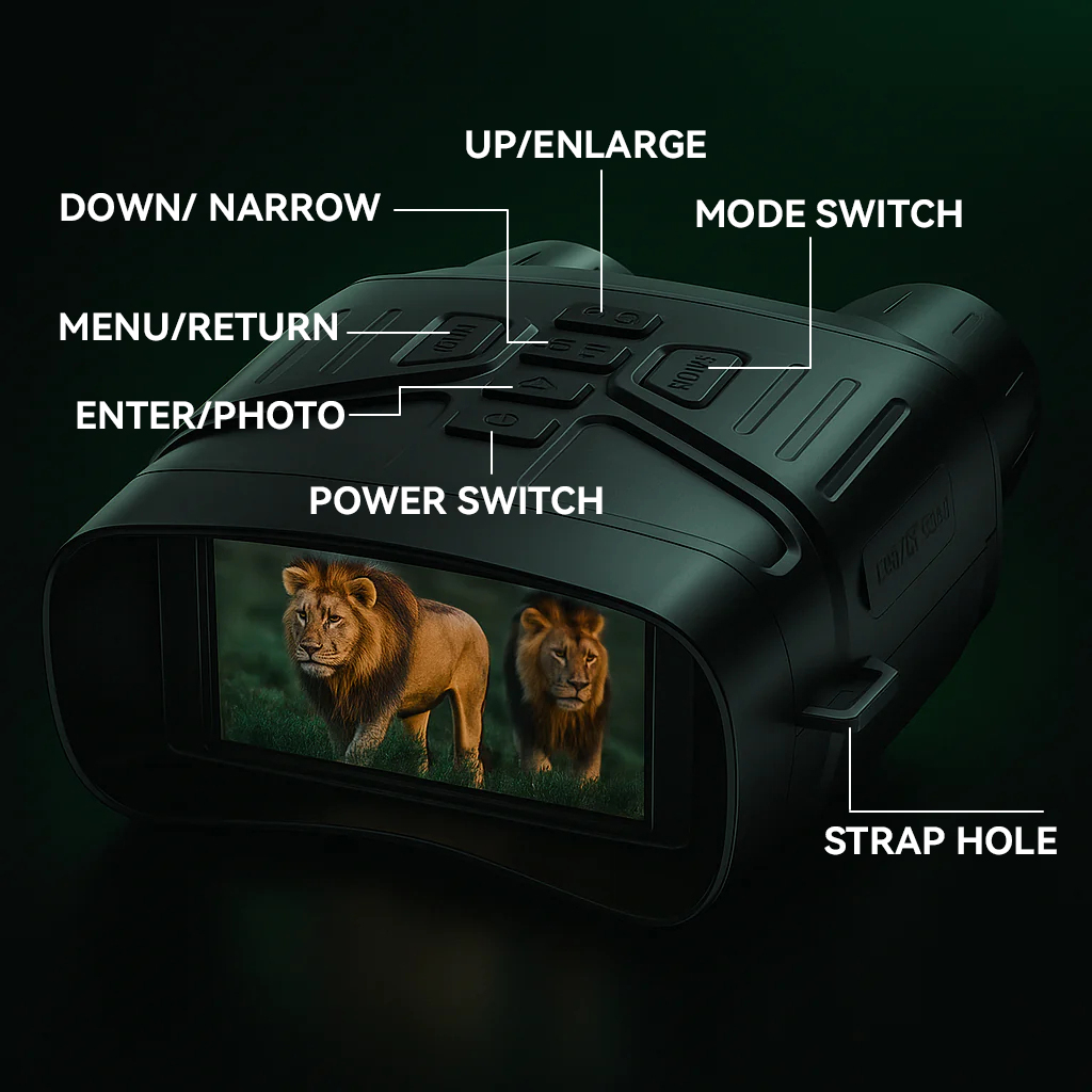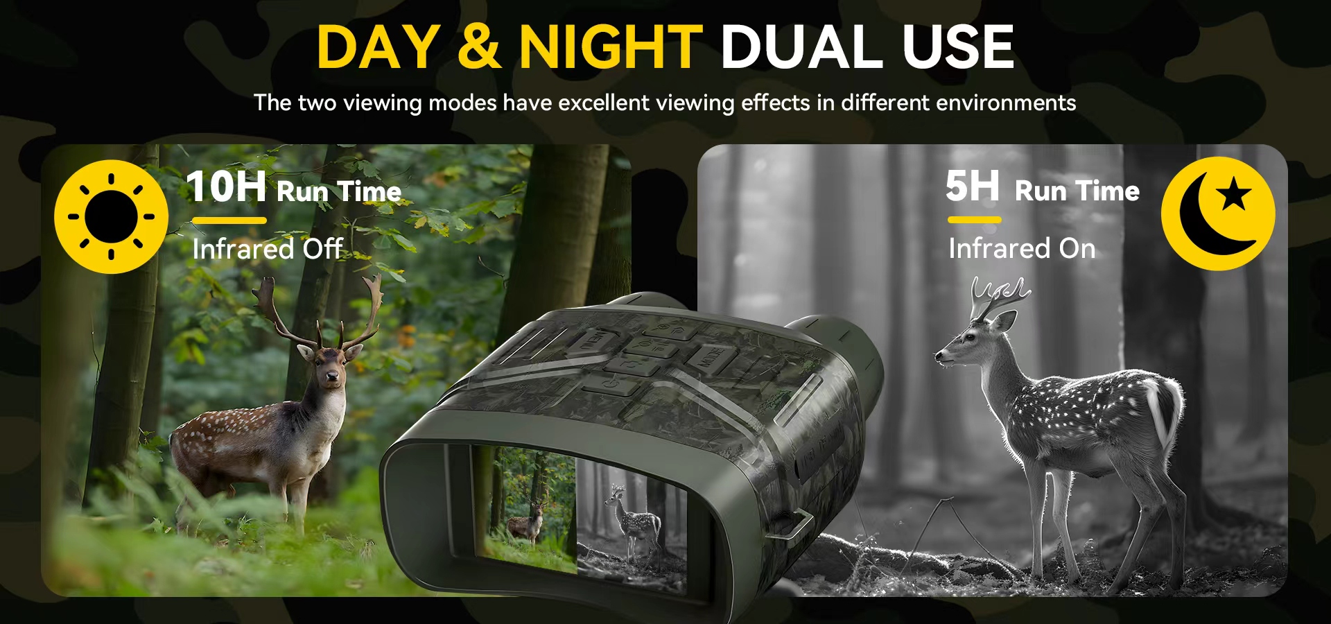These night vision binoculars feature a standard 1/4 threading. The holes at the base of the binoculars can be directly connected to a tripod. (Tripod not included)