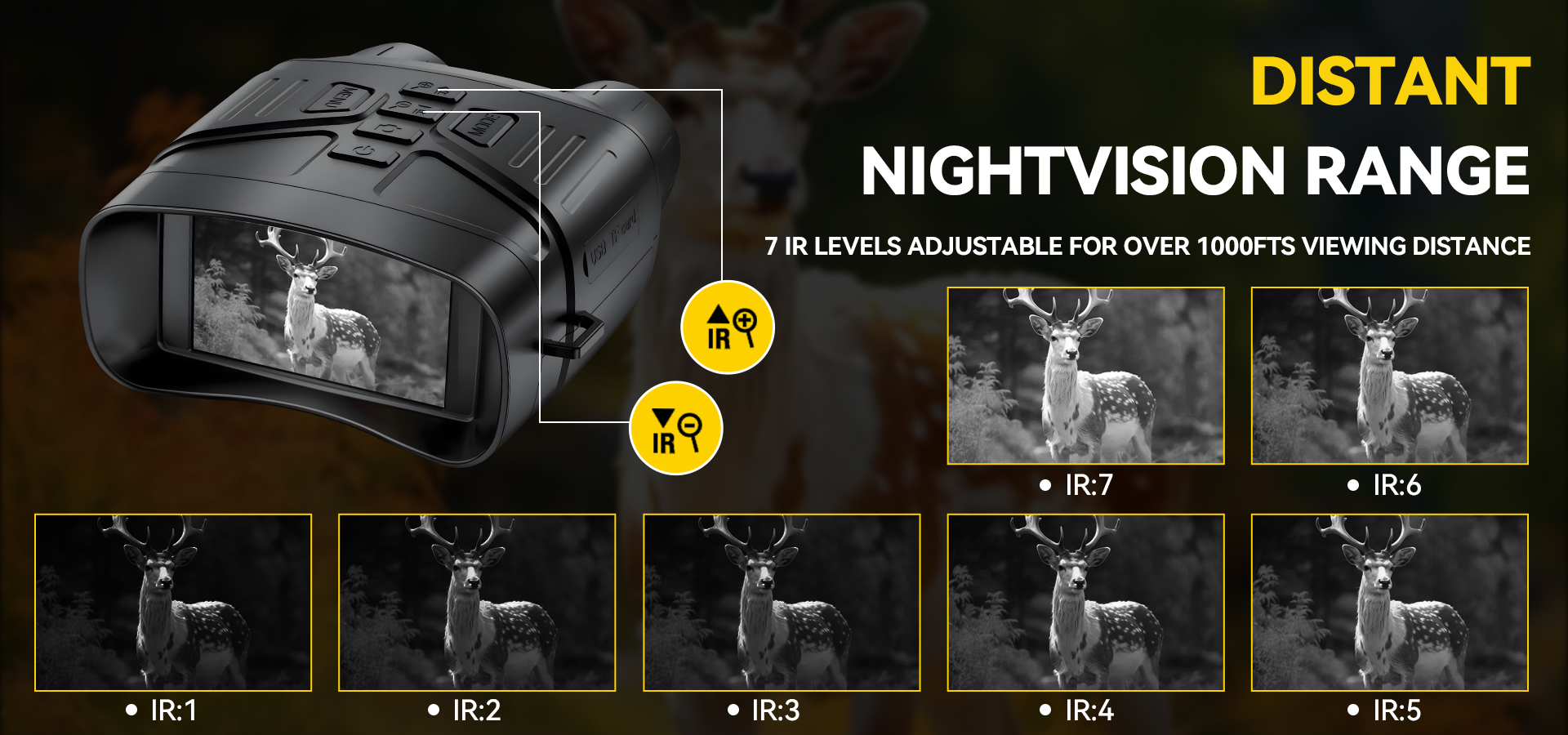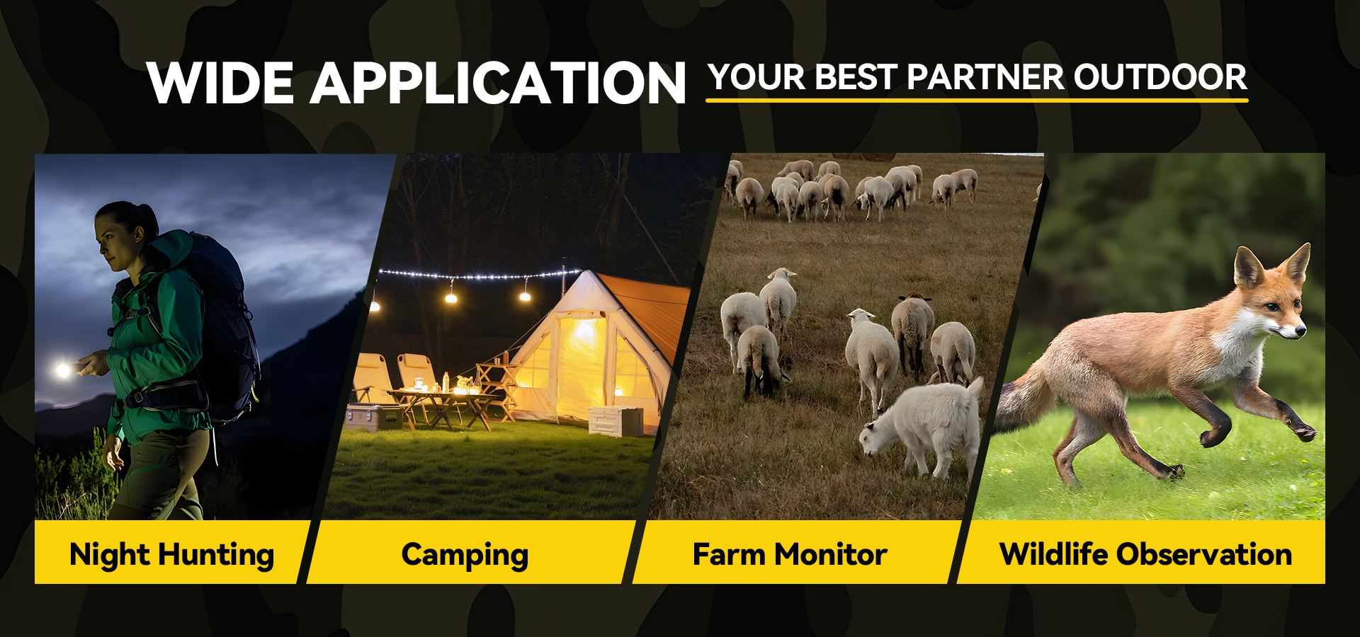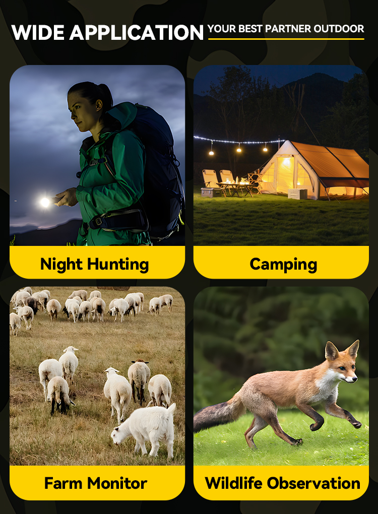 These night vision binoculars feature a standard 1/4 threading. The holes at the base of the binoculars can be directly connected to a tripod. (Tripod not included)
